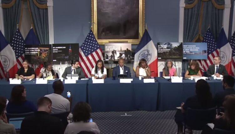 میئر ایرک ایڈمز نے اپنی ہفتہ وار پریس کانفرنس میں مختلف موضوعات پر بات کرتے ہوئے نیویارک سٹی کے مسائل اور ان کے حل کے لئے اپنے اقدامات کو تفصیل سے بیان کیا۔میئر ایرک ایڈمز نے اپنی ہفتہ وار پریس کانفرنس میں مختلف موضوعات پر بات کرتے ہوئے نیویارک سٹی کے مختلف مسائل پر اپنے خیالات اور اقدامات کو تفصیل سے بیان کیا۔انہوں نے احسیہ بادی کو نیویارک سٹی چلڈرن کیبنٹ کے ایگزیکٹو ڈائریکٹر کے طور پر تعینات کرنے کے اعلان کیا اور بچوں کی فلاح و بہبود کی اہمیت پر زور دیا۔ میئر ایڈمز نےسابق صدر ٹرمپ پر ہونیوالے حملے کے تناظر میں بات کرتے ہوئے غصے اور نفرت کے درمیان فرق پر بھی بات کی، ان دونوں کے اثرات کو اجاگر کرتے ہوئے مئیر نے کہا کہ غصہ تبدیلی اور بہتری کے لئے تحریک دے سکتا ہے جبکہ نفرت تباہی کا سبب بنتی ہے۔انہوں نے نفرت انگیز جرائم اور سوشل میڈیا کے اثرات پر بھی روشنی ڈالی، خاص طور پر بچوں کے بنیاد پرستی کے خطرات کے بارے میں بات کی۔میئر نے عوامی تحفظ کی کوششوں پر بھی زور دیا اور نیویارک سٹی کی بین الاقوامی شہرت اور سیاحت کے مثبت پہلوؤں پر روشنی ڈالی۔میئر نے شہر میں لائف گارڈز کی تعداد میں اضافے اور ساحلی تحفظ کے لئے ڈرون کے استعمال کی تعریف کی۔ گرمی کی شدت کے حوالے سے احتیاطی تدابیر کے بارے میں بھی آگاہی دی گئی۔ پریس کانفرنس میں میئر نے ڈیلیوری ورکرز کی کمائی میں اضافے اور آؤٹ ڈور ڈائننگ کے مواقع پر بھی بات کی۔مجموعی طور پر میئر ایڈمز نے نیویارک سٹی کے مختلف مسائل پر اپنے خیالات اور اقدامات کو تفصیل سے بیان کیا۔