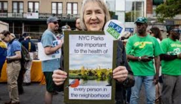 نیویارک سٹی پارکس کے بجٹ میں کٹوتیوں کے خلاف وکلا کا احتجاج
