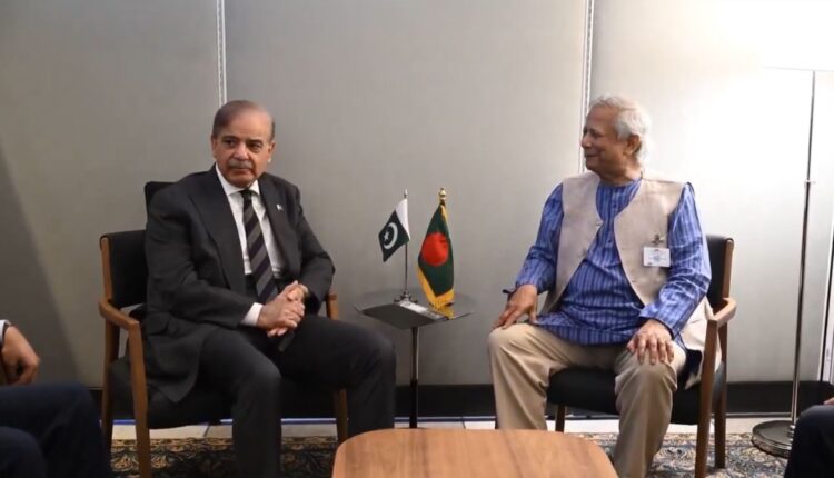 نیویارک:وزیراعظم پاکستان محمد شہباز شریف سے بنگلہ دیش کے چیف ایڈوائزر پروفیسر محمد یونس نے اقوام متحدہ کی جنرل اسمبلی کے 80ویں اجلاس کے موقع پر سائیڈ لائن پر ملاقات کی۔