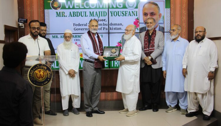 کراچی – مشیر وفاقی ٹیکس محتسب حکومتِ پاکستان عبدالماجد یوسفانی نے کہا ہے کہ اگر انسان خلوصِ نیت اور جذبۂ خدمت کے ساتھ کام کرے تو اللہ تعالیٰ خود اسباب پیدا کرتا ہے اور بڑے سے بڑے کام میں آسانی عطا فرماتا ہے۔