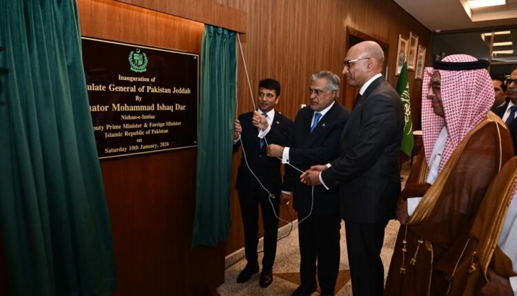 جدہ میں نائب وزیراعظم اور وزیر خارجہ سینیٹر محمد اسحاق ڈار نے قونصلیٹ جنرل آف پاکستان کی نئی عمارت کا باقاعدہ افتتاح کر دیا۔