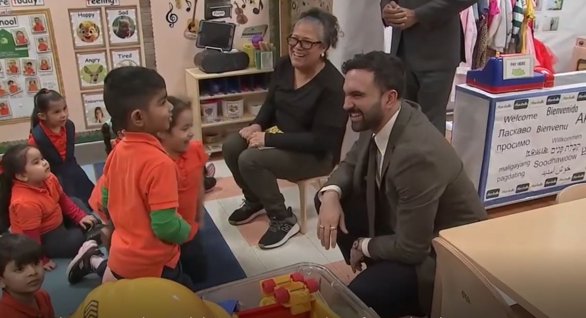 نیویارک سٹی کے میئر زوہران ممدانی اور نیویارک سٹی پبلک اسکولز کے چانسلر کمار سیموئلز نے 3-K اور پری کے پروگرامز کے لیے درخواستوں کے باضابطہ آغاز کا جشن مناتے ہوئے بروکلین کے علاقے سائپرس ہلز میں ایک 3-K اور پری کے چائلڈ کیئر سینٹر کا دورہ کیا۔