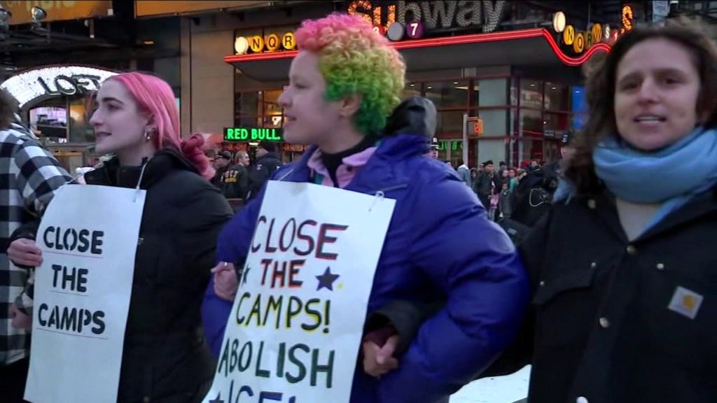 At least 30 members of an anti-ICE coalition were arrested during a Times Square protest on Sunday, according to police and the group. Those arrested were among nearly 500 demonstrators with the group Close The Camps who rallied on the steps of the New York Public Library at 42nd Street and Fifth Avenue around 3 p.m. before making their way to offices for media in Times Square, according to one of the group’s organizers, Andy Ratto.