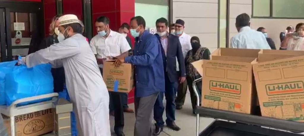 Dallas city of Texas state notice that several Muslim organization find themselves busy in social work for relief, among them is the DFW Muslim community who began the distribution of food among first responders, Doctors, Para medics staff, Police and fire fighters.