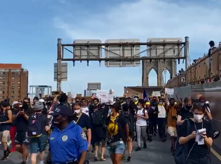 A memorial rally in protest has been reported by late afternoon, again in New York City. George Floyd’s brother Terrance Floyd marching with more than 5,000 protesters over Brooklyn Bridge from Brooklyn to Manhattan Foley Square. Peace full marchers chanting slogan “George Floyd,” “No Justice, No Peace” and “Black Lives Matter” and ask justice from the US. Government and Authorities.