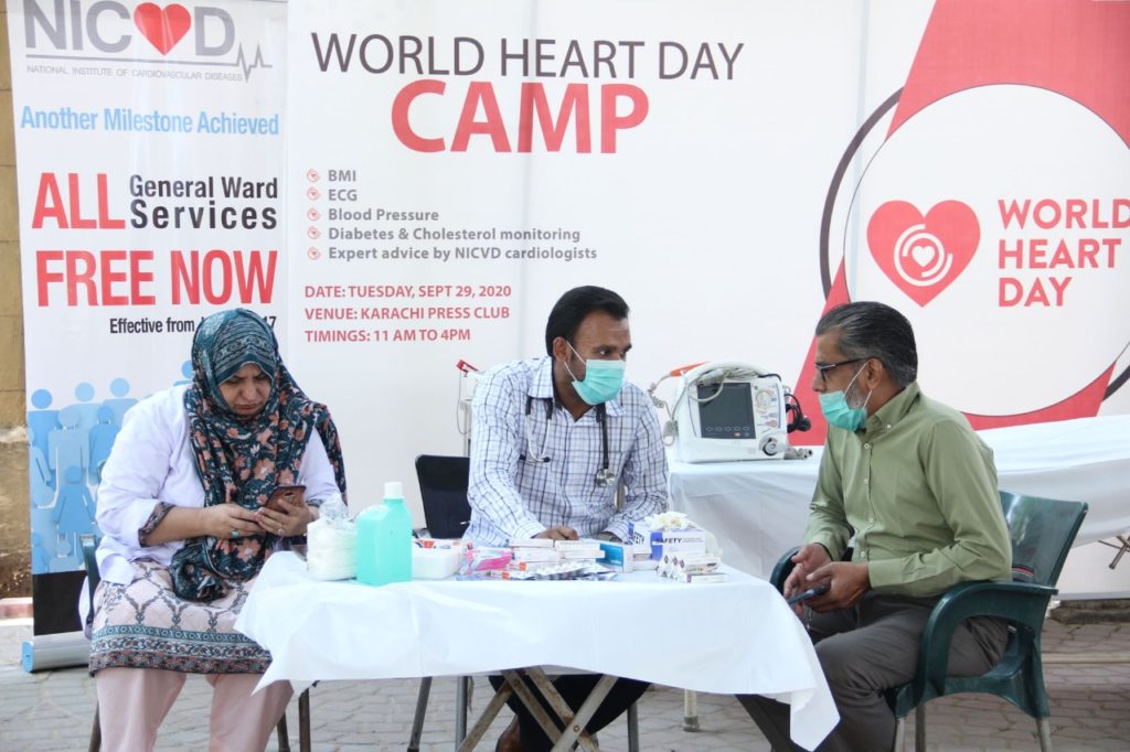 The awareness session was part of a day-long ‘Heart-Health Camp’ jointly organized by the Karachi Union of Journalists-Dastoor (KUJ-D) and Karachi Press Club (KPC) in collaboration with National Institute of Cardiovascular Diseases (NICVD), Karachi and local pharmaceutical firm PharmEvo in connection with World Heart Day 2020 at KPC.