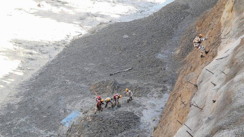 Twelve people were rescued from one of the tunnels on Sunday but 25-35 more were still trapped in the second one, state disaster relief official Piyoosh Rautela told news agency. With the main road washed away, paramilitary rescuers had to scale down a hillside on ropes to reach the entrance. Emergency workers were using heavy machinery to remove tonnes of rocks.