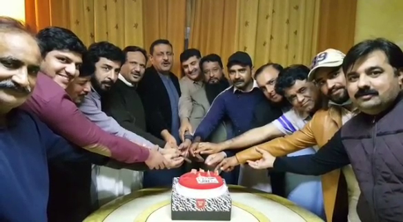 A cake was also cut at the meeting to celebrate the release of Hamza Shahbaz on bail.
