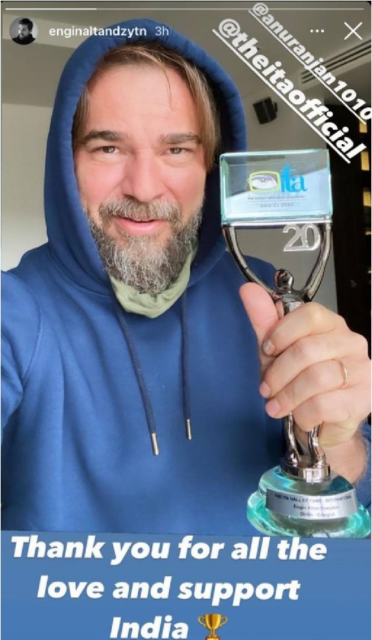 Turning to Instagram, the 41-year-old Turkish star shared his award thanking his Indian fans for their love and support.
