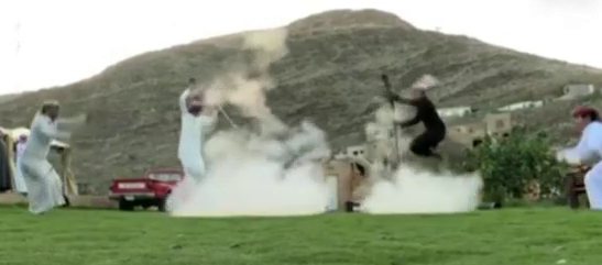 The unique style of gunfire with dance among Saudi youth has been going on for decades, which is not only popular but also specially arranged.
