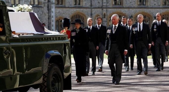 Queen Elizabeth and her family paid their last respects to Prince Philip at a funeral on Saturday that celebrated his naval past, his international heritage and seven decades of service in which he helped guide the queen through repeated crises.
