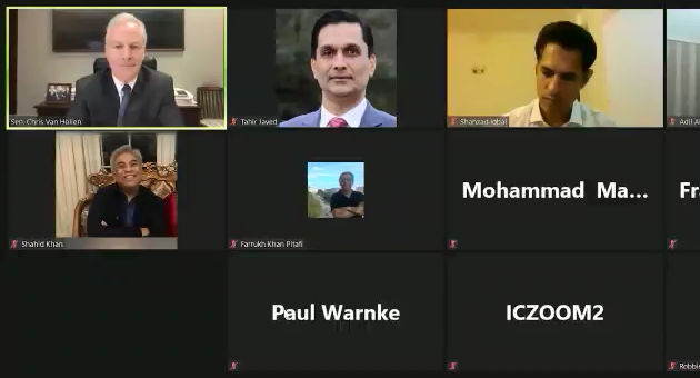 A virtual meeting of American and Pakistani journalists was arranged with Senator Chris Van Hollen to explain the Pak-Afghan peace, trade and economic development bill. The event was hosted by US Democratic leader Tahir Javed.