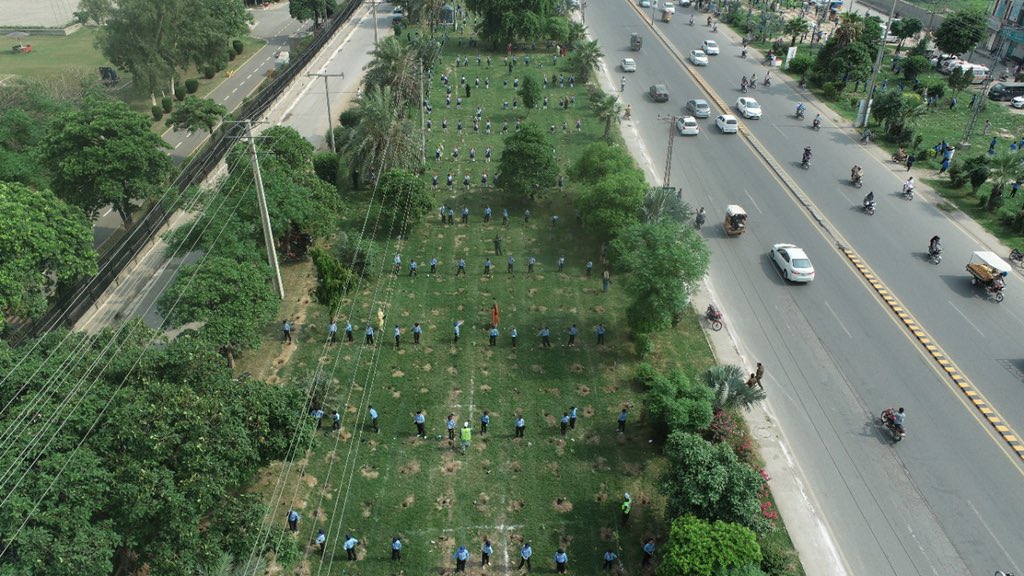 The saplings were planted along the 14-kilometer greenbelt of GT Road passing through Gujranwala city right from Aziz crossing to Chan Da Qila bypass after sirens sounded. Up to 12,500 students with teachers, members of civil society participated in the event.