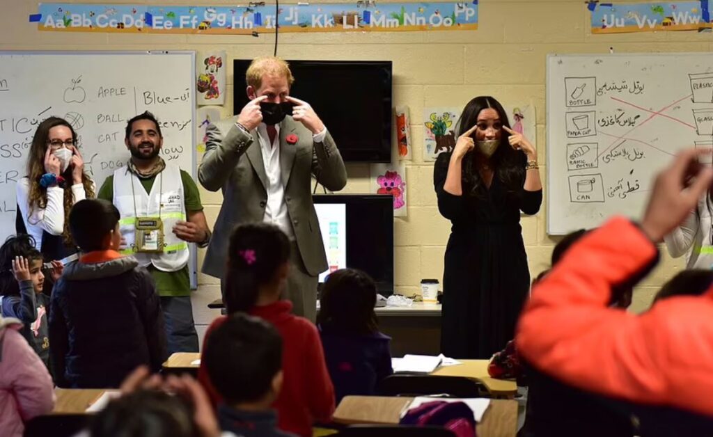 Harry and Meghan also visited a English learning classroom full of children, and spoke to several pupils who practiced phrases such as ‘nice to meet you’.