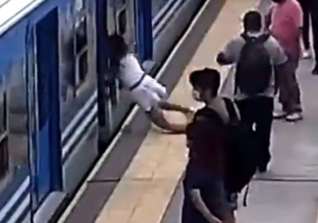 As she stumbles, she falls between two carriages and vanishes. The incident took place in Argentina on March 29. A user share this spine tingling CCTV footage update on her social media handle.