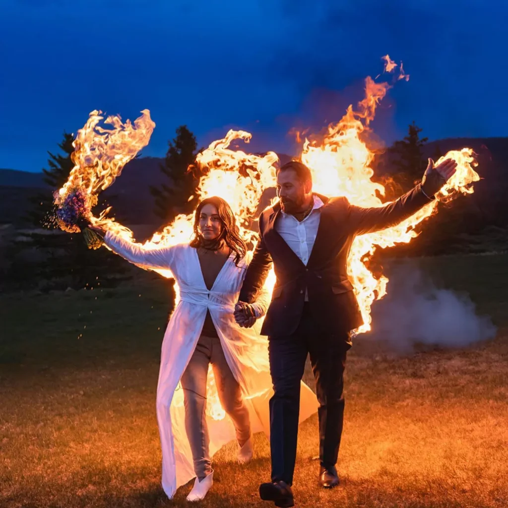 According to New York Post, A newlywed couple literally went out in a blaze of glory after setting themselves on fire to end their wedding ceremony.