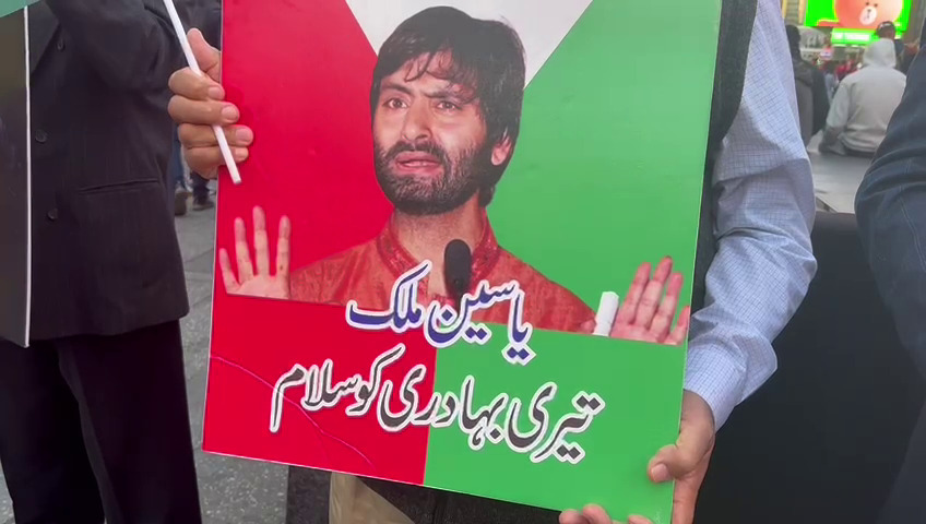 Protest is being held in Times Square, Manhattan against the sentencing of Hurriyat leader Yasin Malik by the Indian court. The protestors of all races gathered at Times Square to raise their voices against the court decision.