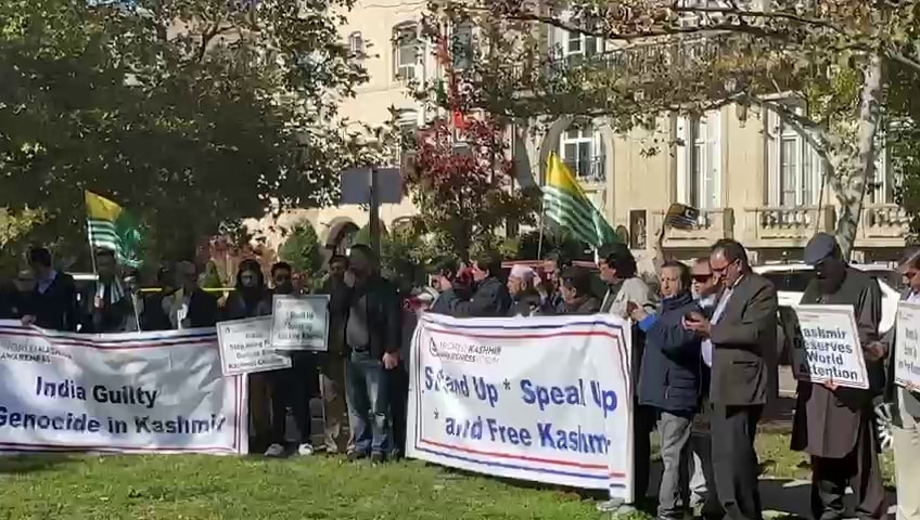 New York: On the completion of 75 years of Indian illegal occupation on Kashmir, the Pakistani and Kashmiri community marked Black Day, with holding protest demonstrations at parts of US including the capital Washington, and New York.