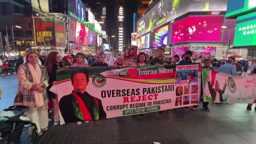 PTI USA gathered at Time Square in New York to protest against the gruesome killing of senior journalist Arshad Sharif in Kenya and the assassination attempt on party chairman Imran Khan in Gujranwala.