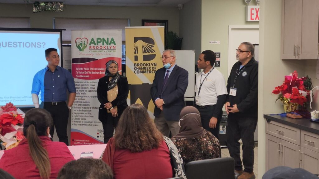 APNA Community Center held an information session with the Brooklyn Chamber of Commerce regarding easy loans, resources and business expansion plans for small businessmen of the Pakistani community in New York.
