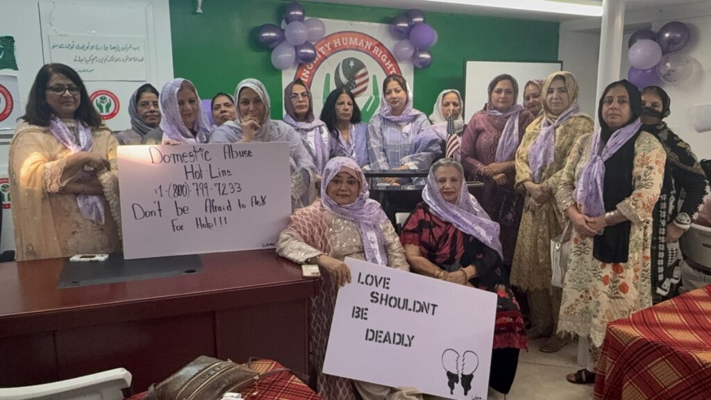 The participants women from the Pakistani American community were dressed in purple as a symbol of domestic violence awareness, protection and prevention.
