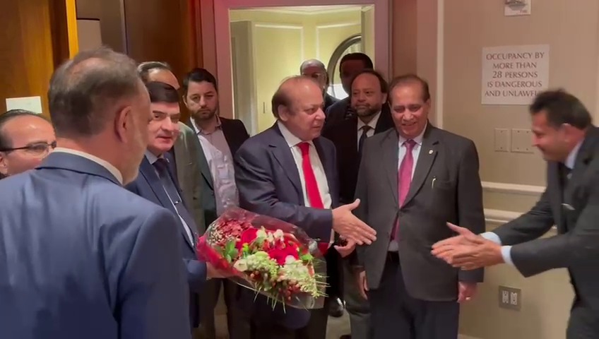 On the arrival of PML-N founder Nawaz Sharif in New York, PML-N USA President Rohail Dar held a special meeting among the party leaders at a private hotel. Nawaz Sharif was warmly welcomed by the party workers.