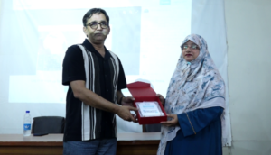 The chairperson of the department, Dr. Asmat Ara, expressed her gratitude to the CEO Voice of South Asia, Zahid Rana, for his support in the tree plantation campaign and for starting an internship program for students. She also presented shield of appreciation to CEO VOSA from the Department of Mass Communication.