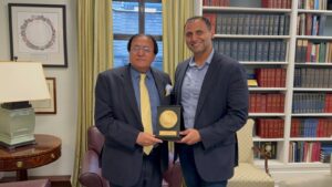 The Chief Justice of Azad Jammu and Kashmir expressed his gratitude to the Bar Association of New York City. Chief Justice Raja Saeed Akram Khan also presented a shield to the President of the Bar Association, Mohammad Usman Farid.