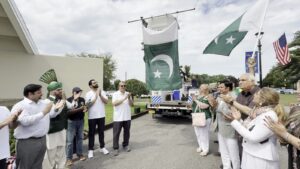 NEWYORK: Pakistani American community celebrated Pakistan’s 78th Independence Day in the Valley Stream area of Long Island. Nassau County Police contingent marched past and saluted.