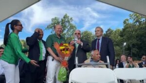 Pakistani national songs were also played during Pakistan’s Independence Day, while other guests, including police officers, were presented with bouquets and awarded for their services.