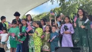 The Pakistani American community participated in the ceremony in large numbers with their families. The national anthems of the United States and Pakistan were played at the beginning, and the children waved the flags of both countries.