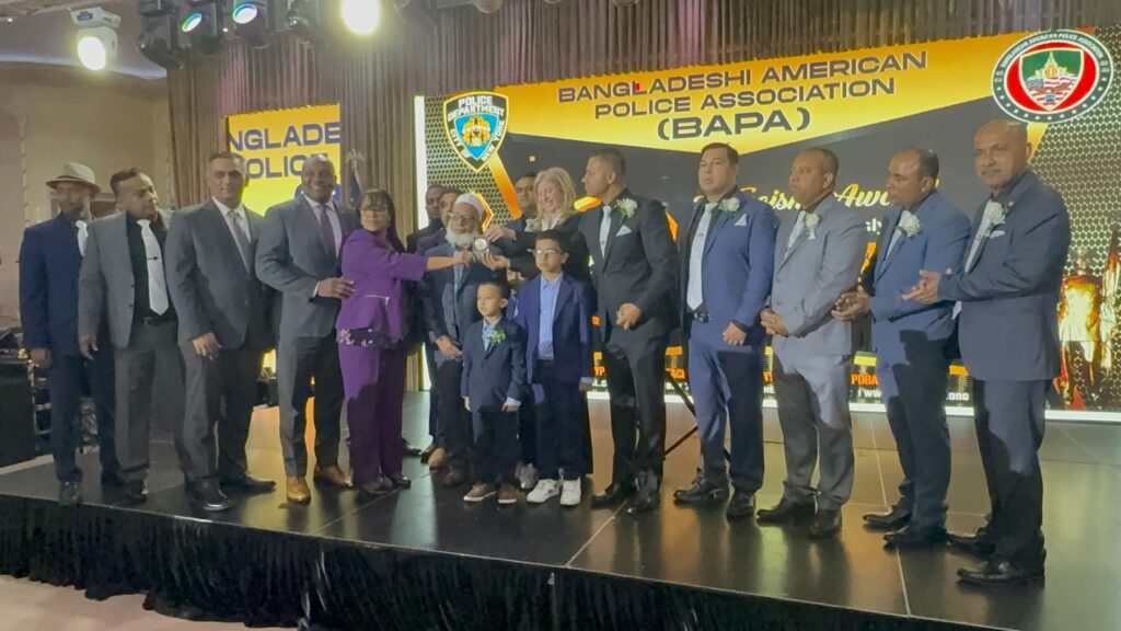 At its annual awards dinner, the Bangladeshi American Police Association named Police Commissioner Jessica Tisch as woman of the year, Deputy Chief Salvatore G as man of the year, Pakistani-origin Inspector Adeel Rana as commanding officer of the year, while Bangladeshi-origin officers and members of the association were given awards in various categories in recognition of their services.