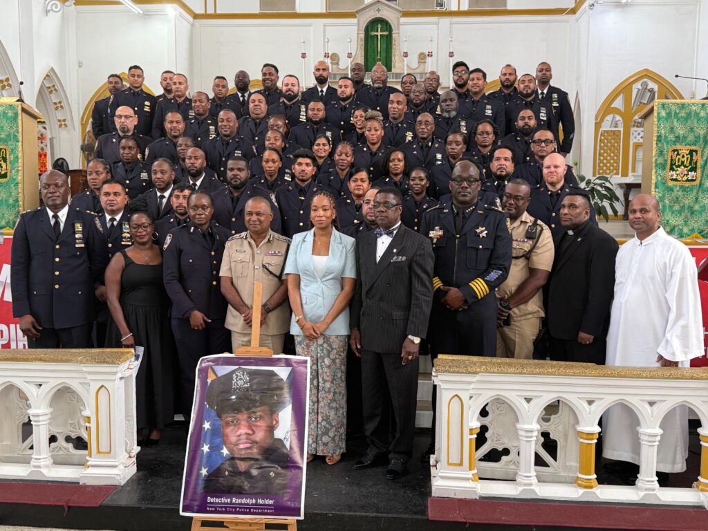 A delegation of more than a hundred officers and personnel from various departments of the New York Police Department attended the memorial service for Randolph Holder.