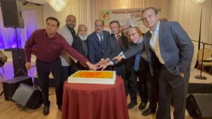 The interfaith dinner was held at a local restaurant in Hicksville, New York, began with the recitation of the Holy Book, the national anthem of Pakistan and prayers by the Christian community.