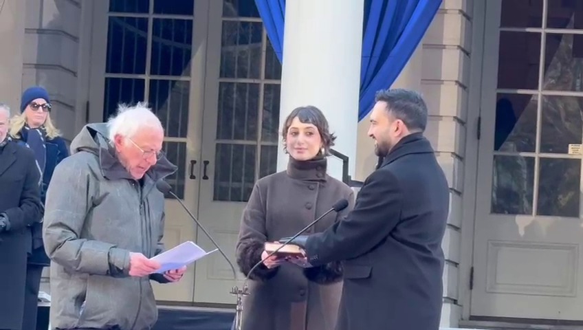 A senior Democratic Party official administered the oath of office to Zoharan Mamdani, who repeated the oath with his hand on the Holy Quran.