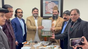 Senator Mahmood-ul-Hassan presented awards to Danish Malik, Dr. Ijaz Ahmed and Dr. Ghulam Mujtaba. Finally, the participants also celebrated the birthday of Jawad Butt, owner of Khan Baba Restaurant, by cutting the cake.