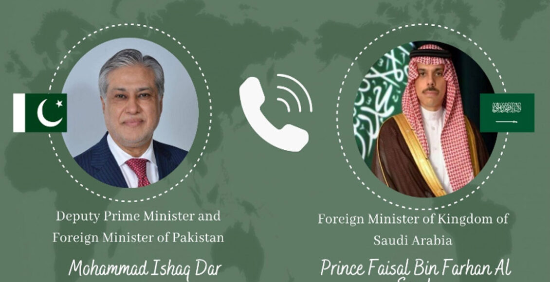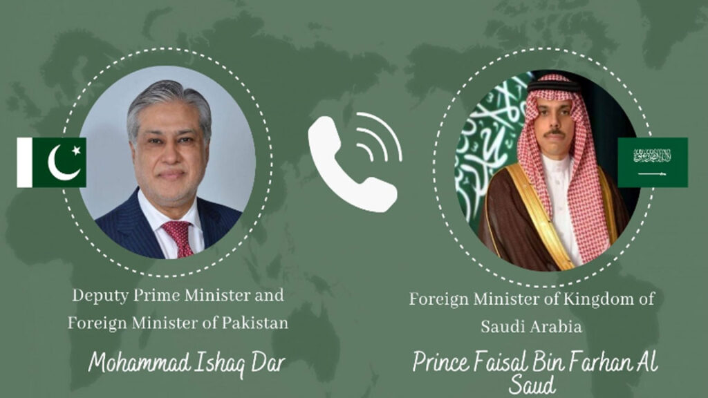 ISLAMABAD: Deputy Prime Minister Ishaq Dar spoke with Saudi Foreign Minister Prince Faisal bin Farhan and discussed the Pak-China Five-Point Initiative for peace in the Gulf and Middle East.
